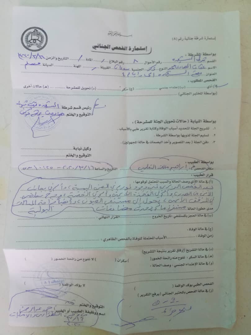 دونت أسرة الشاب عثمان الهادي بلاغا جنائيا ضد نظاميين لدى قسم شرطة الشجرة تحت المواد الاذى الجسيم، التعدى الجنائي، التهديد وإستغلال النفوذ والسلطة ويجري تحرير اوامر قبض ضدهم ومخاطبة القوات التابعة لهم توطئة لرفع الحصانة عنهم للقبض عليهم، وتعود تفاصيل القضية بحسب الهادي محمد خلال حديثه لتارا نيوز إلى إعتداء عدد من الأشخاص بيهم نظاميين يعمل بعضهم بسلاح المدرعات على أحد الثوار بمنطقة الشجرة الحمادب عثمان الهادي محمد ََمما تسبب له إصابات بالغة في العين وتمزيق ثيابه.