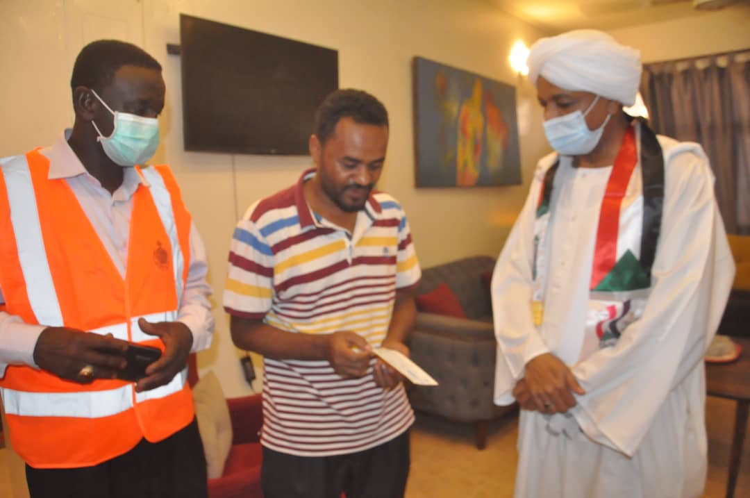 واشاد علم الدين بزيارة ودعم ووقفة الأمين العام لديوان الزكاة الذي تكفل مشكوراً بقيمة إيجار 6 اشهر بجانب بعض احتياجات الغذائية للمرضي بمبلغ 600 ألف جنيه .