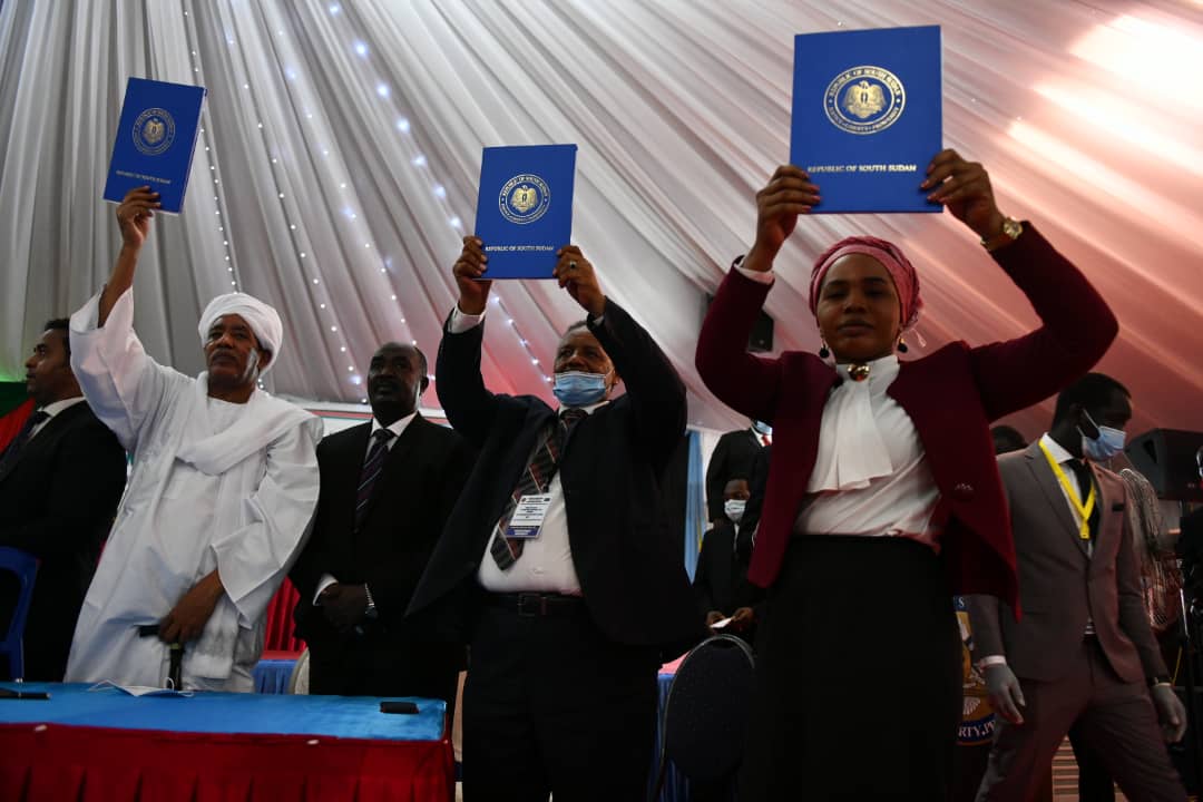 رئيس مجلس السيادة القائد العام للقوات المسلحة الفريق اول ركن عبد الفتاح البرهان والنائب الاول لرئيس مجلس السيادة الفريق أول محمد حمدان دقلو ورئيس مجلس الوزراء الدكتور عبد الله حمدوك ورئيس الجبهة الثورية الهادى ادريس وقادة الجبهه مالك عقار وياسر عرمان وكل الشعب السوداني العظيم بمناسبة توقيع اتفاقية السلام مع الحركات المسلحه في جوبا.