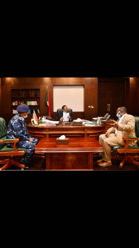 التقى رئيس مجلس الوزراء د. عبد الله حمدوك بمكتبه اليوم مدير عام قوات الشرطة الفريق أول/ عز الدين الشيخ منصور عقب عودته من ولاية كسلا وذلك بحضور د. يوسف آدم الضي وزير الحكم الاتحادي.