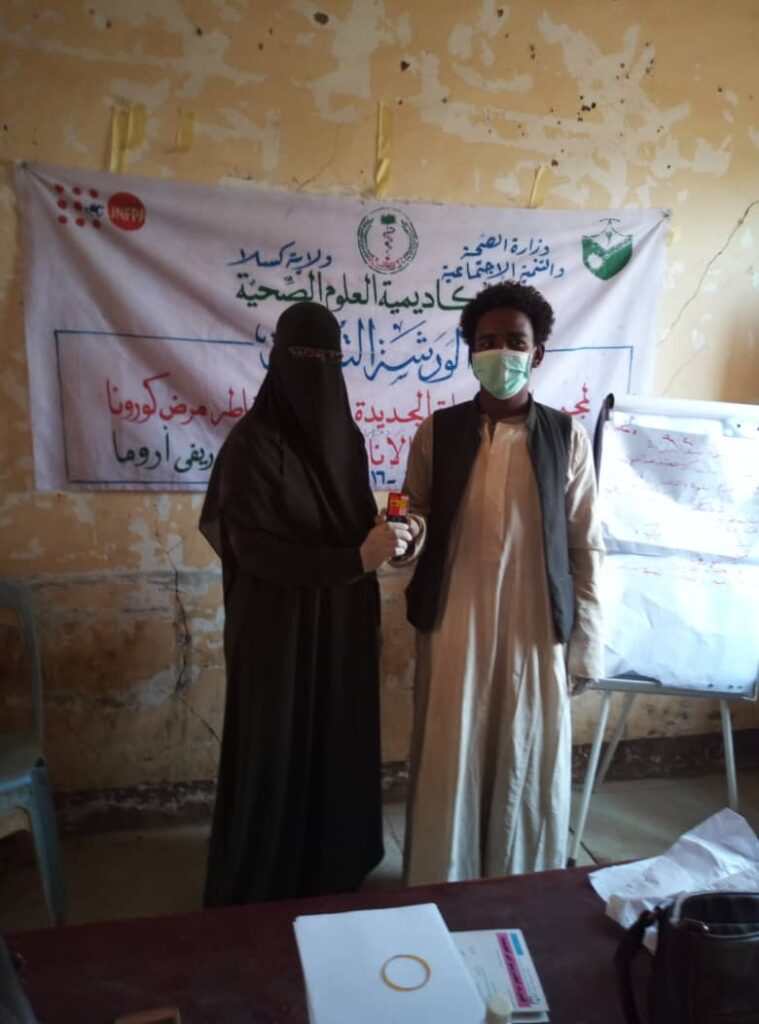 قامت وزارة الصحة ولاية كسلا بالشراكة مع صندوق الامم المتحده وأكاديمية العلوم الصحية بتنظيم ورشة تدريبيه عن مخاطر الزواج المبكر وختان الإناث و فايروس كورونا لعدد من شباب المحليات والقرى المجاورة لها يوم 15من سبتمبر الجاري كما قامت بتكوين مجموعات الحماية لعدد من احياء المحلية والقرى المجاورة لها في الفتره من 15-16سبتمبر 2020م