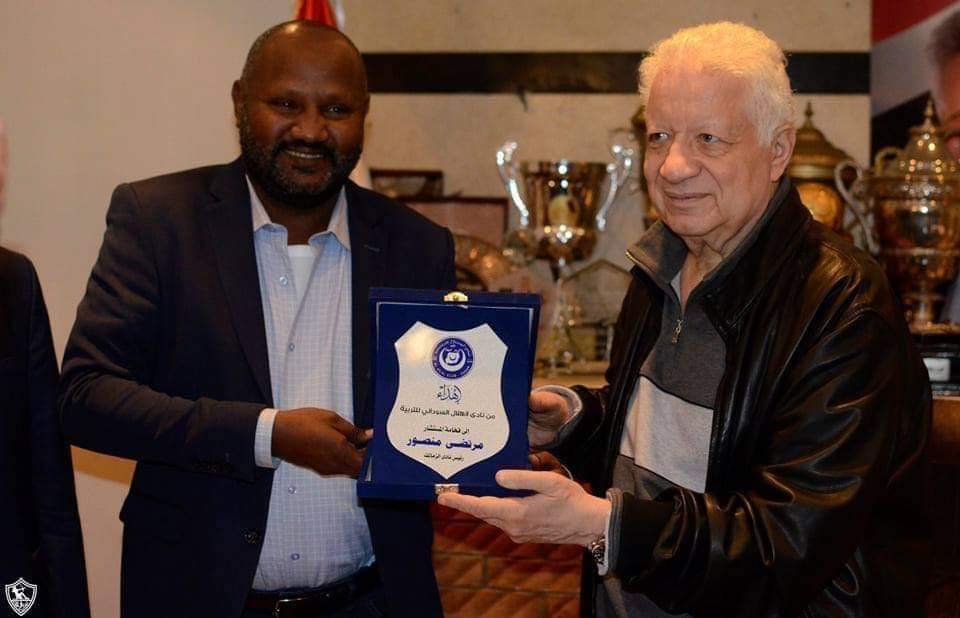 حيث قابل الوفد رئيس نادي الزمالك المستشار مرتضى منصور، الذي إستقبل الوفد الذي يمثل السودان والهلال بحفاوة بالغة، وتجاذب الطرفان أطراف الحديث، وتبادلا الدروع والتكريمات.