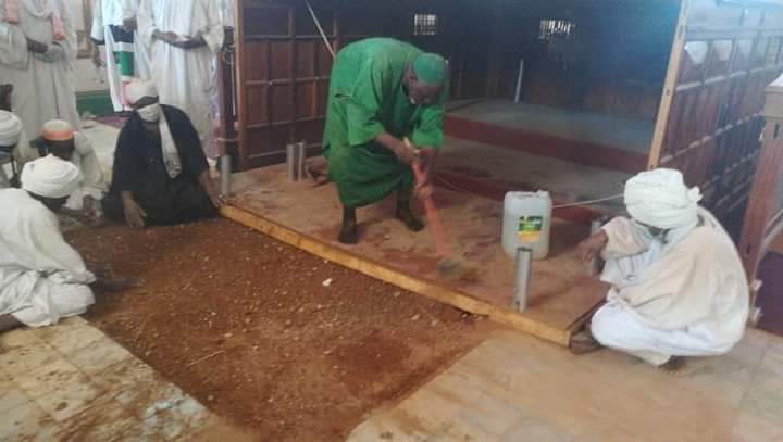 اظهر فيديو تم تداوله على نطاق واسع لحفار القبور الشهير عابدين درمة وهو يواري رئيس حزب الأمة إمام الأنصار الإمام الصادق المهدي الثرى بقبة الإمام المهدي بأمدرمان صباح الجمعة.