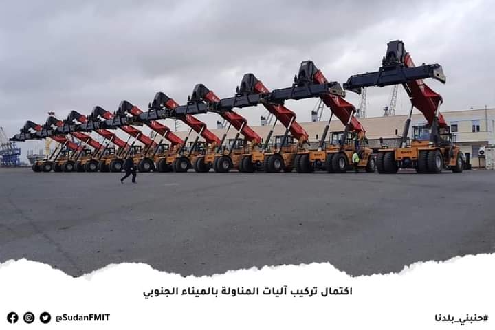 أكملت وزارة البنية التحتية تركيب 10 آليات جديدة للمناولة بالميناء الجنوبي ببورتسودان و هي الآن مستعدة للعمل بكامل سعاتها.