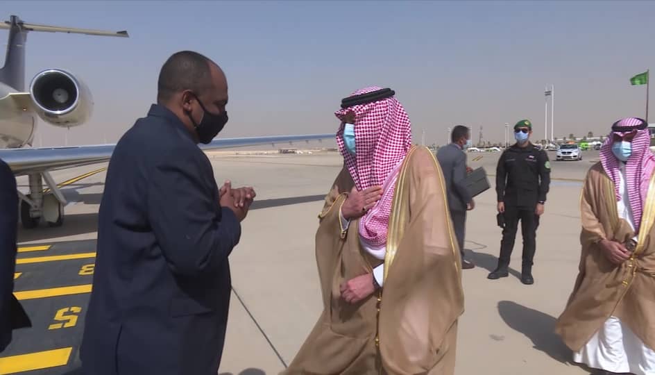 وكان في إستقباله بالصالة الملكية بمطار الملك خالد بن عبدالعزيز الدولي، نائب وزير الخارجية السعودي معالي السيد /وليد الخريجي والسفير عادل بشير سفير السودان لدى المملكة العربية السعودية وأعضاء السفارة.