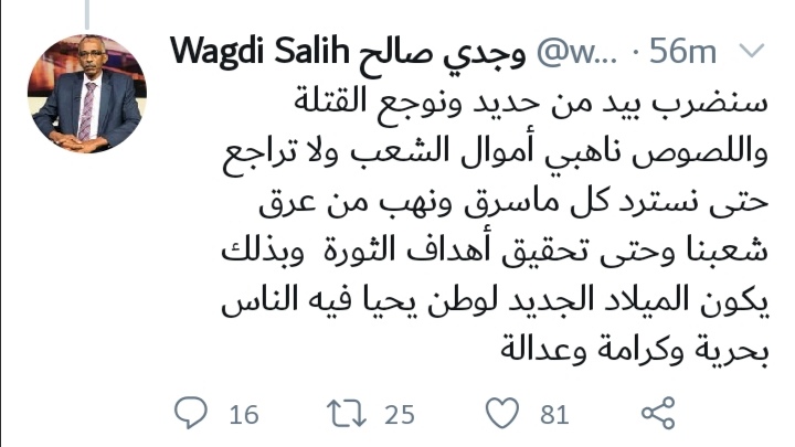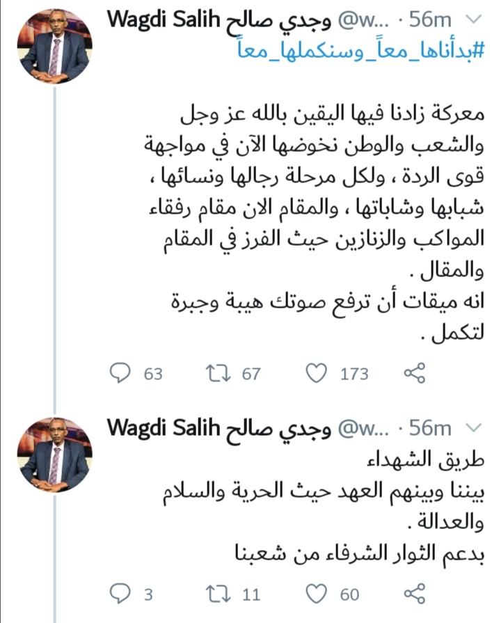 الترندات تغريدة : وجدي صالح: سنضرب بيد من حديد ونوجع القتلة واللصوص ناهبي أموال الشعب الخميس 22 جمادى الآخرة 1442هـ 4-2-2021مالخميس 22 جمادى الآخرة 1442هـ 4-2-2021م 681 الترندات تغريدة : وجدي صالح: سنضرب بيد من حديد ونوجع القتلة واللصوص ناهبي أموال الشعب الخميس 22 جمادى الآخرة 1442هـ 4-2-2021مالخميس 22 جمادى الآخرة 1442هـ 4-2-2021م 681 وجدي صالح التعليقات الأكثر تفاعلاً المحلية - أخبار النجوم قرار بفصل الفنان جمال مصطفى “فرفور” من اتحاد المهن الموسيقية إخترنا لكم الإمارات توقف تأشيرات العمل والسياحة للسودانيين تارا نيوز مدرسة الصداقة السودانية بالقاهرة تصدر قرارات صارمة وتوقف 73 مدرسة ومركزاً عن تدريس المنهج السوداني نهائياً المقالات محمد صلاح يكتب: تزوير العقارات في السودان.. الكارثة الخفية التي تهدد مستقبل البلاد المحلية - سياسية حسم الجدل حول “مستشفى الأبيض”.. استشهاد مهند إبراهيم فضل مؤكدؤ المحلية - سياسية مقترح بإنشاء عاصمة إدارية جديدة لنقل مؤسسات الدولة المحلية - سياسية رسالة مؤثرة من الفريق نصر الدين قائد سلاح المدرعات أحدث الأخبار الترندات الأمير/محمد إبراهيم مادبو موسي : “على أبطال القبائل في دارفور التصدي لمليشيا آل دقلو” الترندات تغريد : كيف تفاعل كامل إدريس رئيس الوزراء مع تأهل المنتخب السوداني ؟! الترندات تغريدة : مناوي : هجوم اليوم من خمسة محاور بذات آلة الإبادة التي أُستخدمت في معسكرة زمزم الترندات تغريدة :خالد عمر يوسف : هذه الجرائم المدانة والمستنكَرة لا ينبغي أن تصبح مشهداً عادياً نتعايش معه في حياتنا اليومية. يجب محاسبة مرتكبيها دون تهاون الترندات تغريدة : مبارك الفاضل: هذه الحرب لم يعد لها هدف غير القتل والسرقة وهدم البنيات الأساسية لذلك يجب التعاون مع المجتمع الدولي لوقفها وملاحقةً قادتها الترندات تغريدة : مبارك الفاضل : خريطة الفريق البرهان التي تتحدث عن حوار سوداني سوداني لا مصداقية لها إذا لم يوقف ملاحقة السياسيين