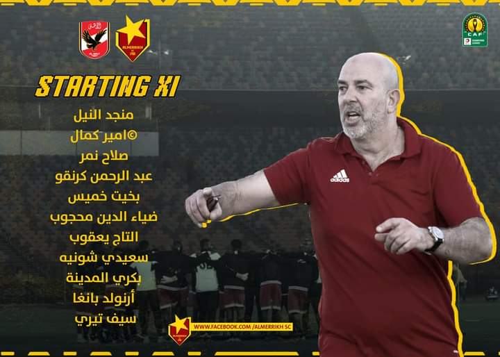 أعلن عن تشكيلة المريخ الرسمية لمباراة اليوم امام الاهلي المصري ضمن مباريات دور المجموعات لبطولة دوري أبطال أفريقيا.