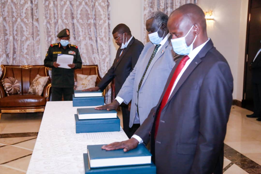 أدى اليمين الدستورية أمام السيد رئيس مجلس السيادة الإنتقالي الفريق اول ركن عبد الفتاح البرهان عبد الرحمن بمكتبة اليوم، كل من القائد مالك عقار اير والدكتور الهادى ادريس يحي والأستاذ الطاهر ابوبكر حجر، اعضاء بمجلس السيادة الإنتقالي ، بحضور رئيس القضاء مولانا نعمات عبدالله محمد خير، والامين العام لمجلس السيادة الفريق الركن محمد الغالي علي يوسف.