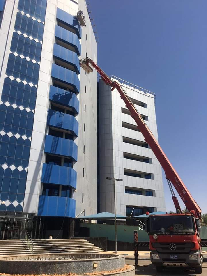 وعلي إثر ذلك تحرك فريق بمركبة الطوارئ المعنية بالتدخل السريع والعاجل للإنقاذ وإنضمت إليها عدد2من المركبات المختصة بالإنقاذ البري إضافة للمركبة حاملة السلالم المختصة بالتعامل مع إنقاذ الحالات الطارئة لحوادث الارتفاعات العالية (الابراج) وإتضح أن هنالك 2من العاملين عالقين وهما يعملان في تركيب الكلادن وإتخذت القوة كافة التدابير الاحترازية علي الارض لتأمين العالقين الاثنين وتم التعامل مع الموقف وإخلائهما بسلامة ولم يتعرضا للاذي