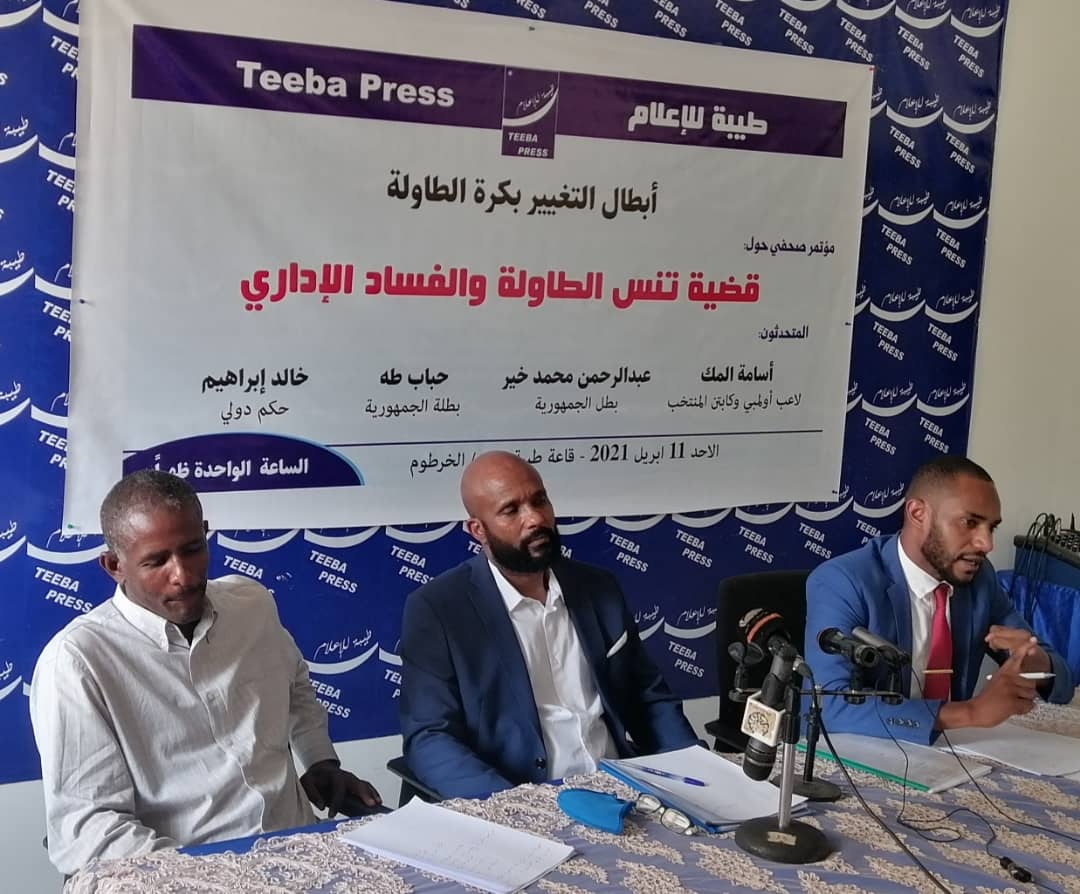 وقال بطل الجمهورية عبد الرحمن محمد خير في المؤتمر الصحفي الذي عقد بطيبة برس: الإتحاد المحلي للتنس مغلق لأكثر من ثلاثة أعوام ولا توجد به مستندات مالية ولا إدارية ولا كشوفات لاعبين وبطولات الجمهورية تقام بمعدل بطولة كل أربعة أعوام ولا يمتلك صالة واحدة منضوية تحت لوائه وكل إهتمام قادة الإتحاد العام منصب نحو المناصب وليس تطوير اللعبة كما أن إختيارات اللاعبين الذين يمثلون السودان في المحافل الإقليمية والدولية ليست وفق معايير فنية أو لجان متخصصة من خبراء اللعبة بل حسب أمزجة وأهواء القائمين علي أمر المنشط.