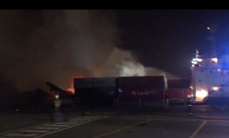 وأضاف: “لم يتم الإبلاغ حتى الآن عن وقوع أي إصابات بسبب الحريق في الميناء”.