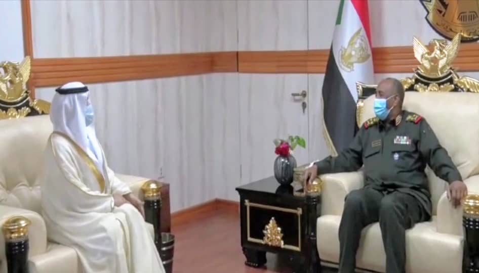 ونقل البرهان خلال اللقاء، تحياته لرئيس دولة الإمارات، الشيخ خليفة بن زايد آل نهيان، بمناسبة العيد الوطني لبلاده. متمنياََ للإمارات حكومةََ وشعباََ مزيداََ من التقدم والنماء.
