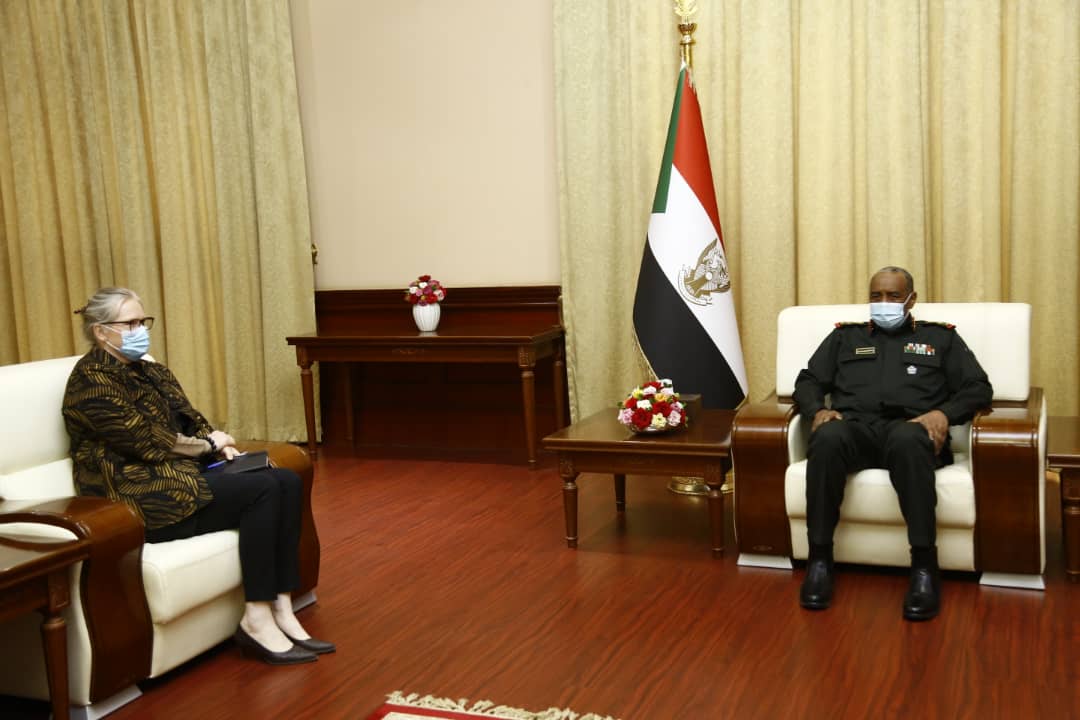 من جانبها اطلعت السيدة السفيرة، رئيس مجلس السيادة، على نتائج زيارة الدكتور أندريه إستيانسن المبعوث النرويجي الأخيرة للسودان، واصفة انطباعه بالايجابي، وأمنت على ضرورة خلق بيئة حوار شامل للوصول لتوافق وطني يضمن الخروج الآمن من الأزمة السياسية الراهنة.