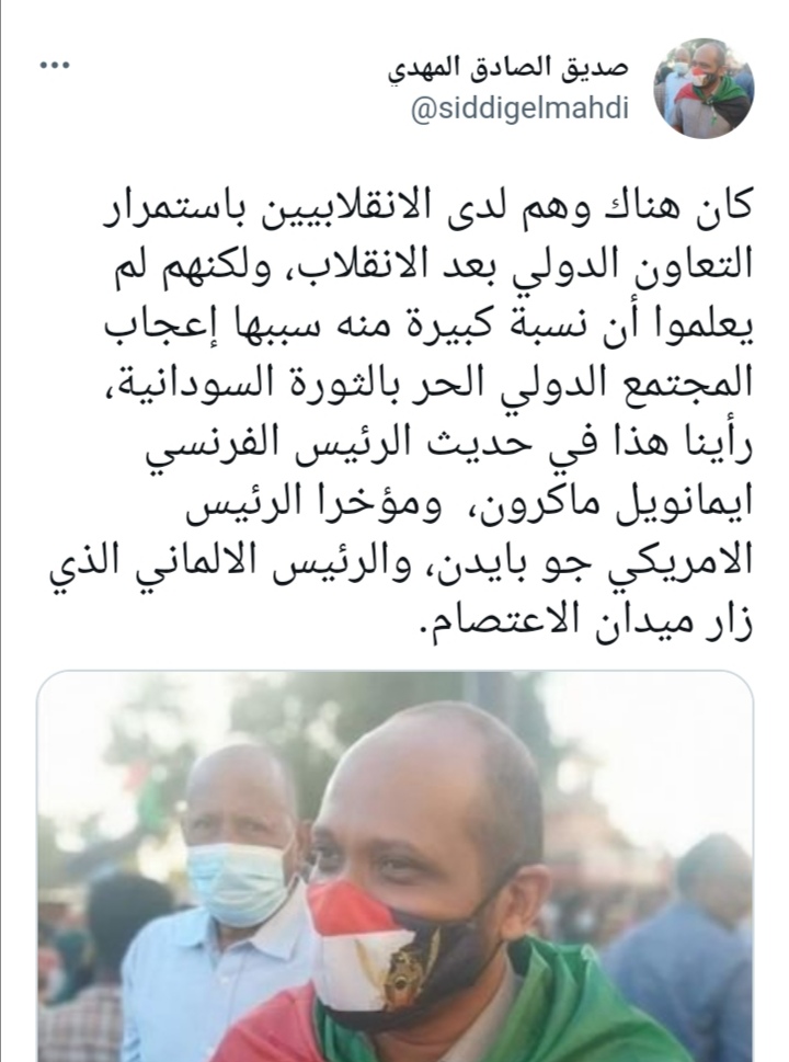 تغريدة : صديق المهدي :كان هناك وهم لدى الانقلابيين باستمرار التعاون الدولي بعد الانقلاب