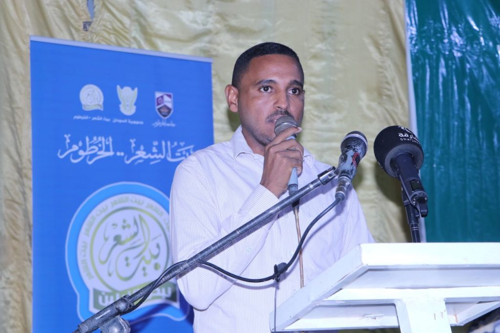 عبدالقادر المكي المجذوب ابتدر قراءات الأمسية محلقا بالجمهور بين عوالم قصيدته التي أسماها (فجرٌ بهذا التِّيهْ)، والتي يقول فيها: