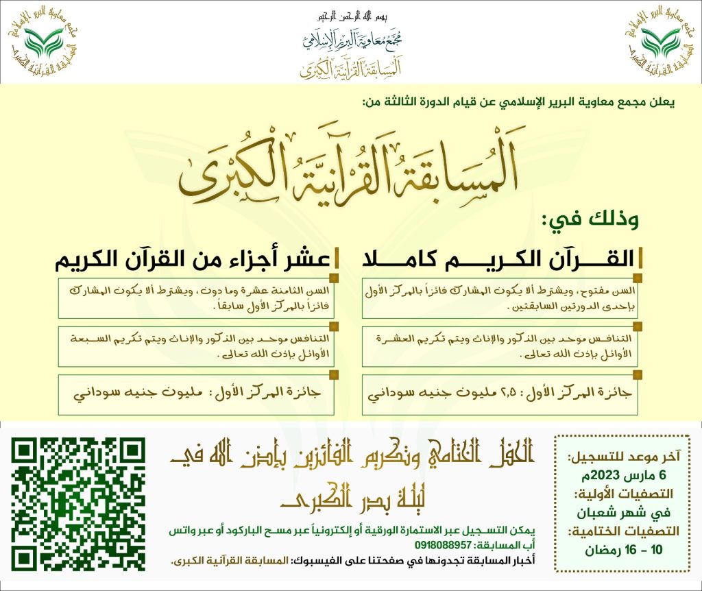 وبرعاية كريمة من الحاج معاوية محمد احمد البرير وحرمه السيدة إيمان يحي المهدي تقررت زيادة الجائزة هذا العام