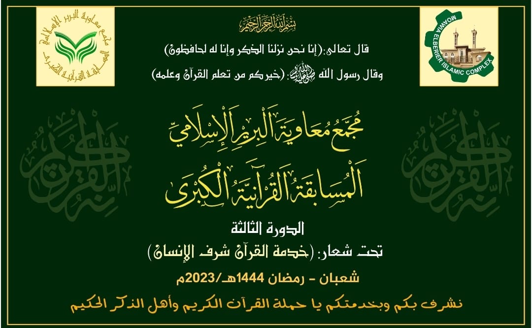 تنعقد في هذه الأيام المباركة من شهر رمضان الكريم التصفيات الختامية للمسابقة القرآنية الكبرى التي يقيمها مجمع معاوية البرير الإسلامي بدورتها الثالثة، والتنافس فيها ضمن مساقين: الأول كامل القرآن الكريم وهو مفتوح لكل متسابق ومتسابقة، والثاني: عشر أجزاء من القرآن الكريم.