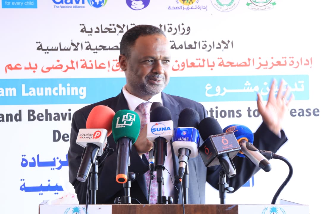 دشّن وكيل وزارة الصحة الاتحادية، د. علي بابكر سيد أحمد، مشروع “تغيير السلوك المجتمعي لزيادة الطلب على التطعيمات الروتينية”، بالتعاون مع إدارة تعزيز الصحة وصندوق إعانة المرضى، وبدعم من منظمة اليونيسيف