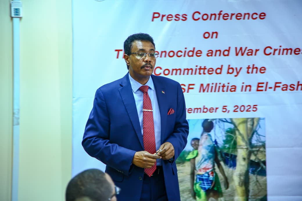 وأوضح السفير عكاشة أن المليشيا فرضت حصاراً على مدينة الفاشر لما يقارب العامين قطعت خلاله الإمدادات الغذائية والطبية والوقود، وقصفت المدينة بالمدفعية والطائرات المسيّرة. وأضاف خلال المؤتمر أن المليشيا شنت عقب انسحاب القوات المسلحة السودانية من المدينة حملة إعدامات واغتصاب وقتل جماعي راح ضحيتها عدد كبير من المدنيين، بينهم أسر بأكملها ومرضى داخل المستشفيات.