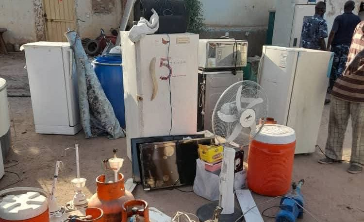 وتشير متابعات إعلام شرطة ولاية الخرطوم إلى تمكن قوة قسم امتداد الدرجه الثالثه من مداهمة منزل بمنطقة الإمتداد بعد توفر معلومات عن وجود كمية من المنهوبات داخل المنزل وبتأكيد المعلومات تم تشكيل فريق بقيادة رئيس القسم وتم ضبط كمية من الأدوات الكهربائية تمثلت في (١٠) ثلاجات مقاسات مختلفه و(٢) شاشه و (٥) مراوح و(٤) أنبوبة غاز إضافة لفرن وغسالة كهربائية وعدد من الأجهزة الكهربائية الأخرى ومجموعة من الاواني المنزليه تم القبض على عدد من المتهمين وفتح بلاغ تحت المادة ١٠٠ إجراءات بقسم شرطة الأوسط الخرطوم .